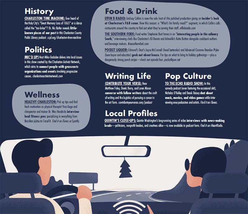 Hitting the road for the holidays? Make the most of the drive time by queuing up hometown podcasts that’ll let you in on food-and-bev news, hidden Charleston histories, political issues, and more. Here, find nine of our favorites (for those that don’t have websites, we give info on where to stream or download)