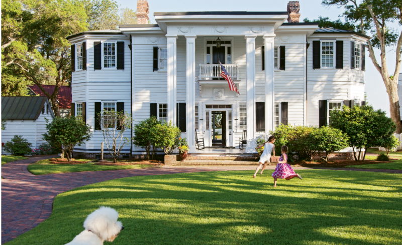 Three times a day, groups of tourists on Segways come rolling through the oak-lined Old Village, pausing in front of the historical Hibben House. As they take in the circa-1755 manse’s grand cornice- and column-adorned façade, their guide dispenses snippets of the home’s past. And there’s certainly no shortage of history to draw from. The oldest surviving structure in Mount Pleasant, it has housed luminaries such as General William Moultrie, who was held captive here by the British during the Revolutionary War, and indigo pioneer Eliza Lucas Pinckney, who moved to the bluff overlooking Charleston Harbor in 1759, seeking fresh air for her ailing husband. (The abode may have once been considered a health retreat.) Often, tour-goers also catch glimpses of modern life in action: current residents Shannon Brown Wood and David Wood unloading their groceries, perhaps, or their daughters—Madelyn, age 10, and Avery, age six—playing with their goldendoodle, Scipio, on the lawn.