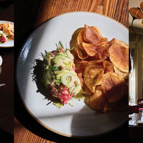 The beverage menu does such extravagance justice, with evocative cocktails such as the “Catamaran Tan,” a gin and tonic riff with aloe, cucumber, and mastic, and by-the-glass pours of Krug Grand Cuvée and delightful reds like the Luigi Giordano Barbaresco. Ditto for the desserts, including everyone’s favorite showy throwback, Baked Alaska—a fitting end to a sumptuous evening.