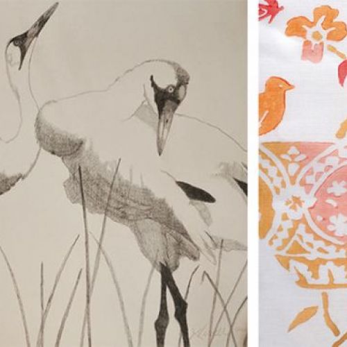 LEFT: Riz Dag (acrylic and pencil on paper, 30" x 43") by Frank Phillips, $1,700 at The George Gallery; RIGHT: Sarah-Hamlin Hastings
