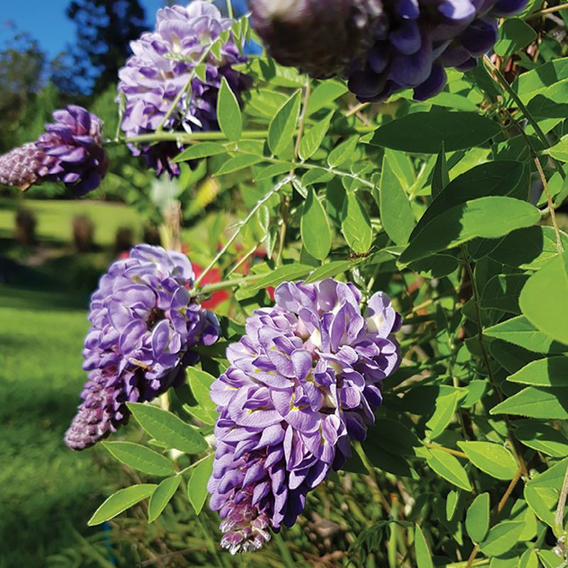 First blossoming from May to June, frutescens may put on a second show in late summer. The hot cultivar, ‘Amethyst Falls’, is particularly reliable in this department.
