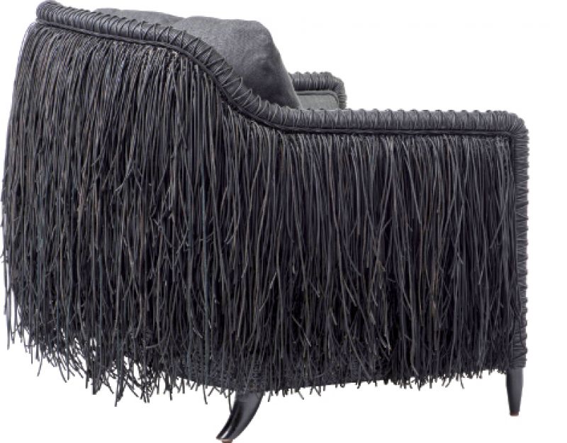 Laura Kirar for McGuire chair covered in 3,500 leather tassles.
