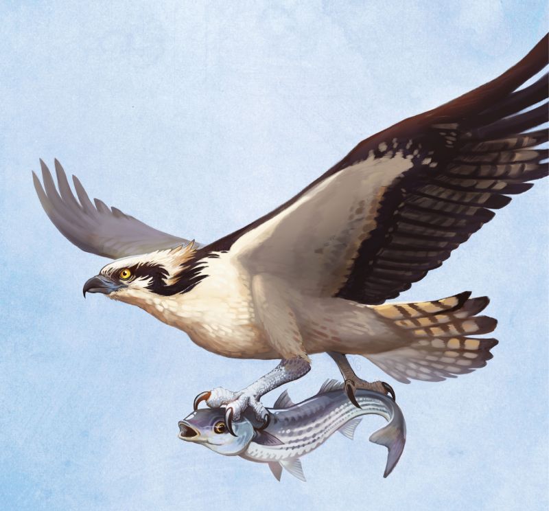 Big Bird - This impressive creature is often confused with its larger relation, the eagle, because of its similar white and brown markings and tremendous size. The adult osprey’s body can reach nearly two feet and its wingspan five-and-a-half feet.