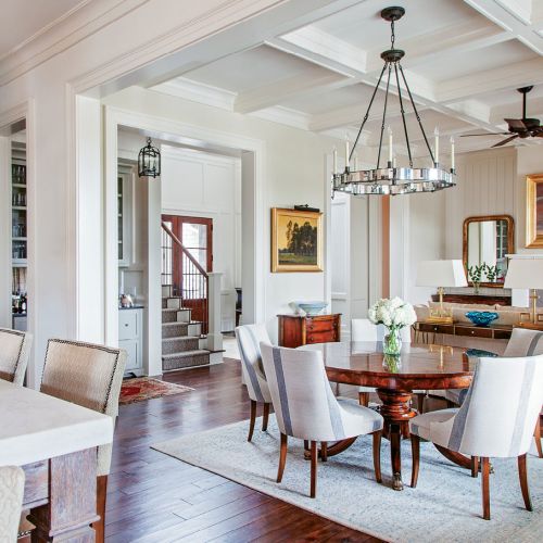 The move proved to be a life-shaping experience. For one thing, it reinforced Allison and LeGrand’s natural inclination to blur the lines between indoors and out. The duo had always enjoyed spending time under the sun, even outfitting their first Charleston pad with a rooftop deck. “But in St. Kitts, we really lived outside, with the doors open all the time,” Allison says. The tropical environment also helped to shape Allison’s design aesthetic. “In the Caribbean, you are surrounded by the use of bold colors,” she notes. “Moving there, I was inspired to take more risks with vibrant hues as well as blending colors and patterns.” Still, as their family matured and Hudson started spending part of the year at a boarding school in New England, the crew began to crave a return to the States. In 2012, they charted a move back to the Holy City, knowing just where to drop anchor: their old neighborhood of I’On. “When we couldn’t find anything to buy that we loved, we decided to rent,” explains Allison. After two years in the 2,700-square-foot main house, the Elebashes fell in love with the property and bought it, knowing it jived with the way they wanted to live.