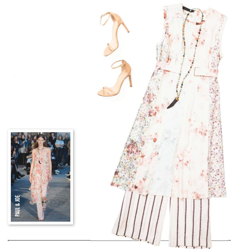 Thinking about transitioning your summer wardrobe into fall? Now’s the perfect time to try the dress-over-pants trend. As Paul & Joe showed on the runway, a floral frock makes a natural match for lightweight trousers—pretty and practical!