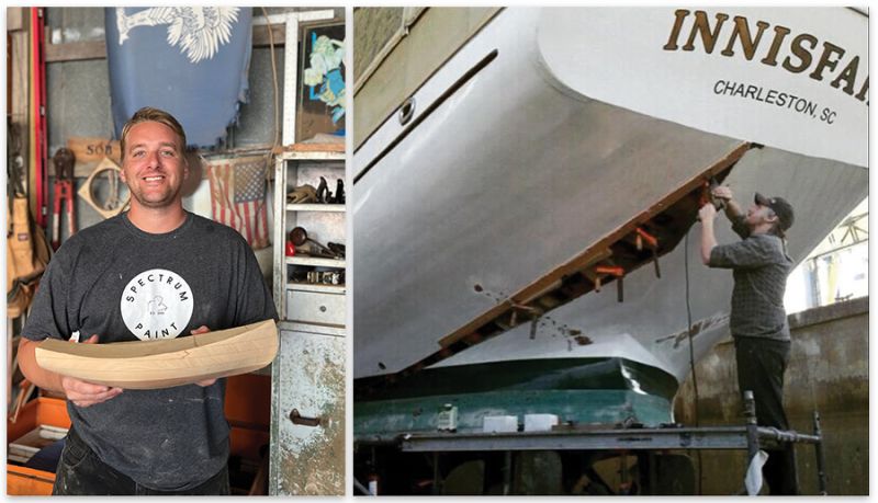 Bayne also had a familial inclination toward the trade. His father, Mark Bayne, is a nationally respected shipwright who built the Spirit of South Carolina tall ship, launched in 2007. “My dad would leave me a certain amount of plywood and hardwood and tell me to build something,” says Bayne, recalling a holder he made for his CD player and CDs. He was a regular at his dad’s shop, sweeping the floor and mixing batches of wood glue. In eighth grade, he and Mark competed at Georgetown’s Wooden Boat Challenge, a four-hour, two-man race to build a functional skiff.