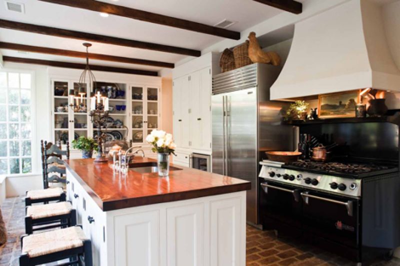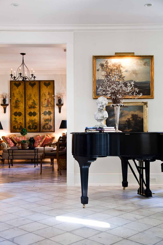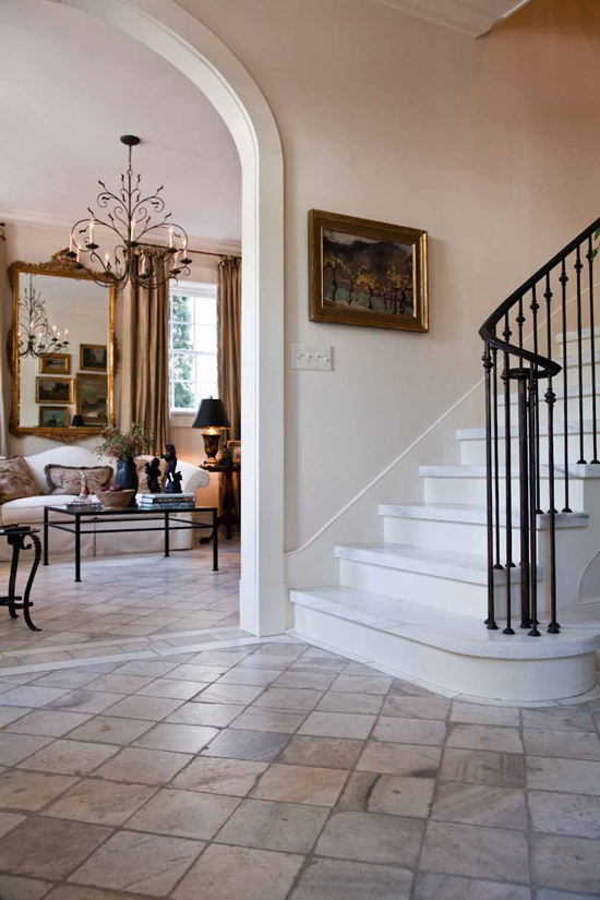 In 1996, they moved in and, almost a decade later, enlisted Beau Clowney Design to oversee phase two, which entailed creating a marble bath off the upstairs master bedroom, widening the entry between the music room and library, putting a wall of windows between the library and garden, re-stuccoing the exterior, removing rotting wood, and retreading the stairwell with marble. The end result is a roughly 3,400-square-foot home with well-proportioned rooms that mimic the scale and volume of the original spaces. Styling-wise, Pinky employed a light touch, keeping things neutral to amplify the sunlight that pours in from the horse-stall windows, just high enough to make window treatments unnecessary. And with input from interior designer daughter Meredith, she’s filled it with favorite pieces from homes past—antique leather books and a vast art collection that includes pieces from those near and dear: her Aunt Francys, daughter Ashley, son-in-law John Dunnan, and one drawing of her own.