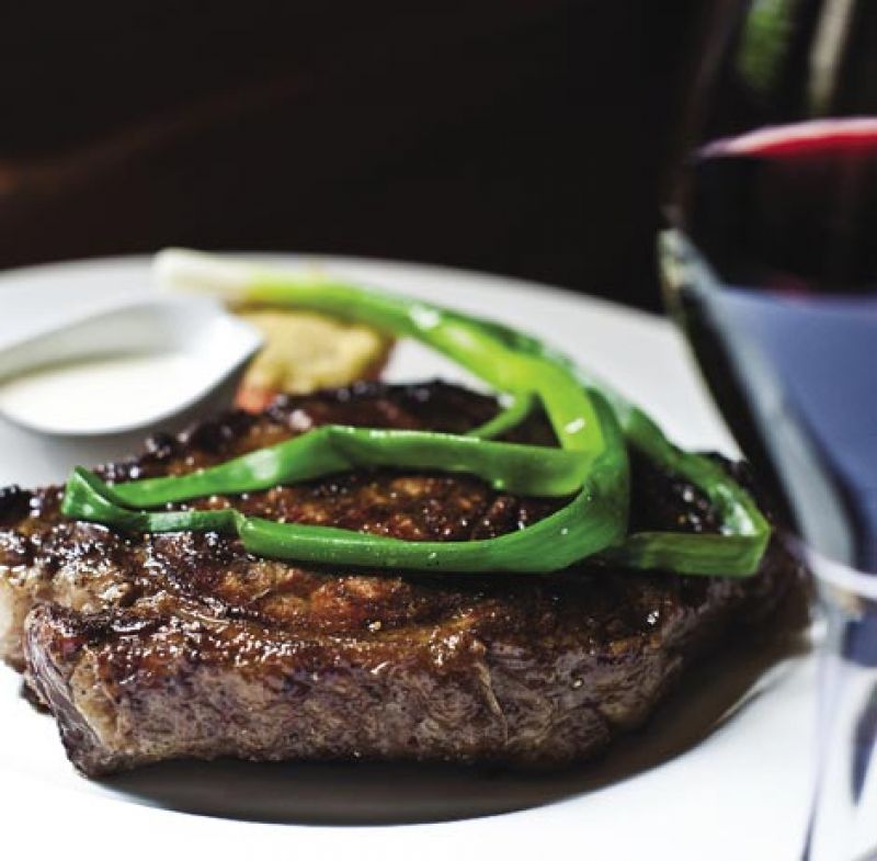 With an eye on the “sinfully grilled” certified Angus beef, a debate ensued on whether to enjoy one of the appealing salads—made with Kurios Farms Bibb lettuce and cherry tomatoes or local field greens with beets—before or after the entrée. The irresistible aroma of grilled beef was in the air, however, and at server Tiffany’s excellent suggestion, we opted to share the generous rib-eye, which we found to be succulently sinful indeed. Grilled to perfection, it was served with horseradish cream and a ripe roasted tomato. A Russian River Valley Hook & Ladder zinfandel proved a worthy companion. Featured side dishes for the evening included local black-eyed pea and bean succotash, unusually good with tomato and green pepper, along with Edisto Island Geechie Boy Grits that were equally outstanding with wild mushrooms, cream, and asiago.