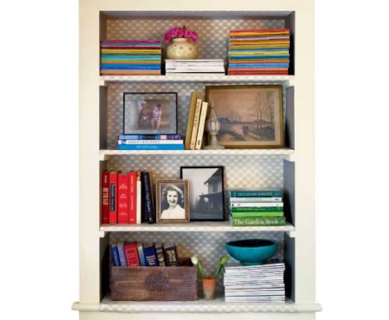 Freshen up an old bookcase in an afternoon with decorative paper and a little restyling