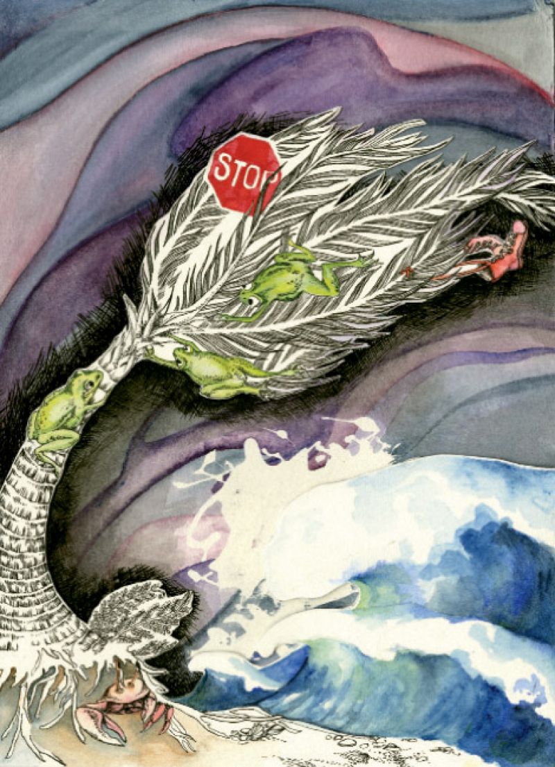 Walking home from a Spoleto event still another evening, the skies opened up, and I pulled off my heels; when I rounded a corner near Wentworth and Smith, I found myself standing in a sidewalk swarm of ecstatic frogs like some fairy girl. Yet another time, I strolled Waterfront Park in a stormy midday blackout as the flags flagellated angrily, snapping cruelly against themselves while their lines clanged mightily against their metal poles. Palmettos shook off their ribs, littering the greens with what looked like prehistoric bones, and whitecaps reached up to roiling clouds who scoffed their advances, spitting on them as their rebuked sea-suitor swelled with want.