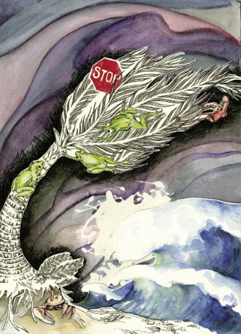 Walking home from a Spoleto event still another evening, the skies opened up, and I pulled off my heels; when I rounded a corner near Wentworth and Smith, I found myself standing in a sidewalk swarm of ecstatic frogs like some fairy girl. Yet another time, I strolled Waterfront Park in a stormy midday blackout as the flags flagellated angrily, snapping cruelly against themselves while their lines clanged mightily against their metal poles. Palmettos shook off their ribs, littering the greens with what looked like prehistoric bones, and whitecaps reached up to roiling clouds who scoffed their advances, spitting on them as their rebuked sea-suitor swelled with want.