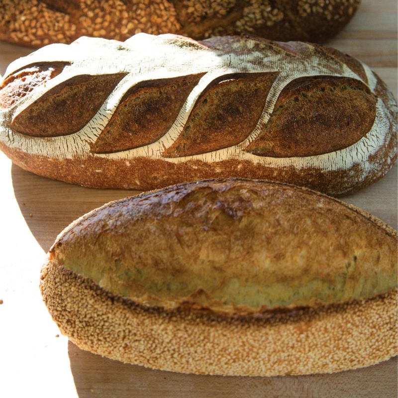 But for all the motivation behind Root Baking Co. and its products, the breads are just damn tasty. The naturally leavened loaves of semolina, whole wheat, multigrain, and more possess delicately charred crusts and chewy, sour-sweet centers. “For me,” says Wilkins, “good bread is balanced, with a taste that’s not too tangy, a delicate open crumb, holes that aren’t too big, a fair price, and sustainably farmed ingredients.”