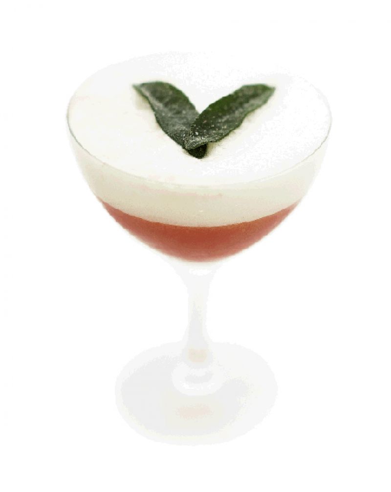 Fill a chilled martini glass halfway with sage foam. Combine tequila, syrup, and juices in a shaker with ice. Shake well and strain onto sage foam. Garnish with sage leaves.
