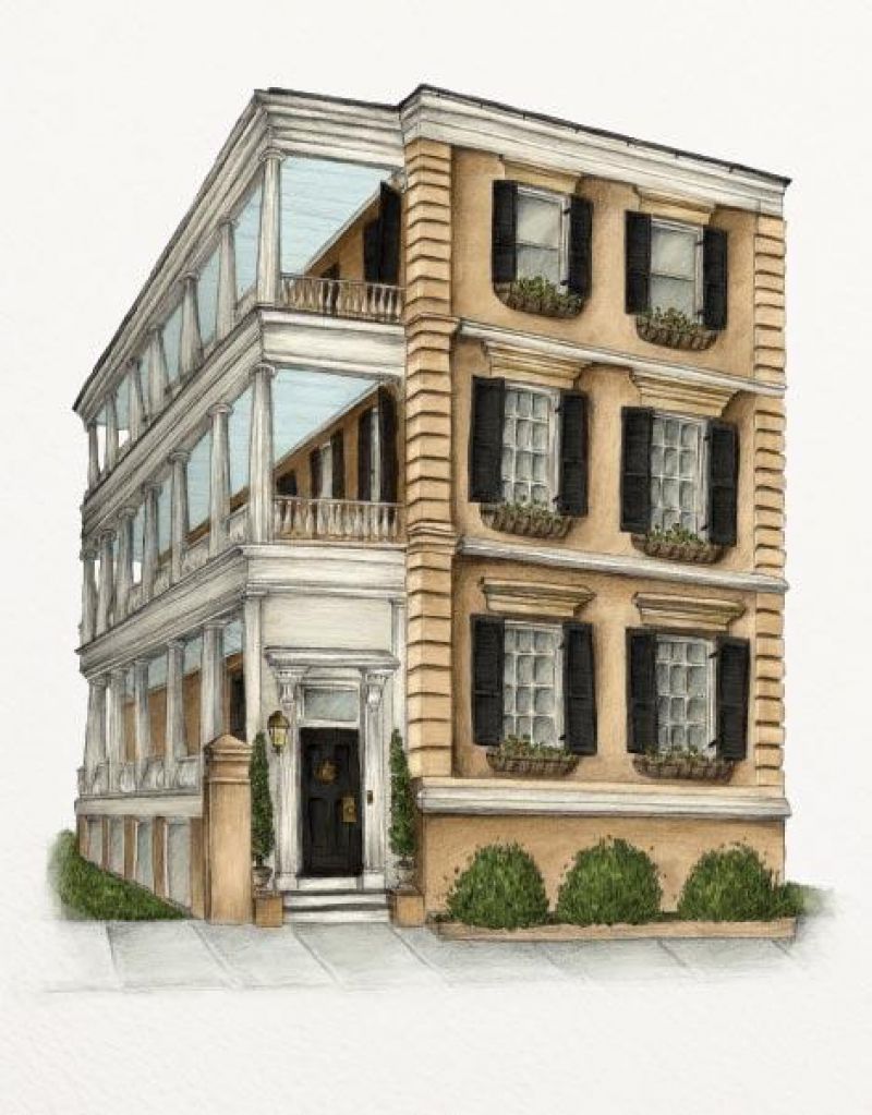 Most single houses have large porches known in Charleston as “piazzas.” These stretch the length of the house and are held up by columns, often ornately carved. The ceilings are traditionally painted a light hue known as “piazza blue.” Some call this “haint blue” because of the Gullah belief that the color repels haints, or restless spirits. Others speculate the sky-like shade deterred wasps and other insects from nesting—a theory that may hail from the fact that early blue paints contained lye, which repels bugs.