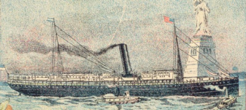 This striking color postcard from Clyde Line Steamships shows the East Coast itinerary, including New York, Boston, and Providence, for December 1900. Passengers could embark at any of those locales and cruise south to Charleston in mechanized style. According to an 1872 map, the “accommodations” wharf for passenger ships such as this was at the intersection where Queen Street meets East Bay Street and Vendue Range.