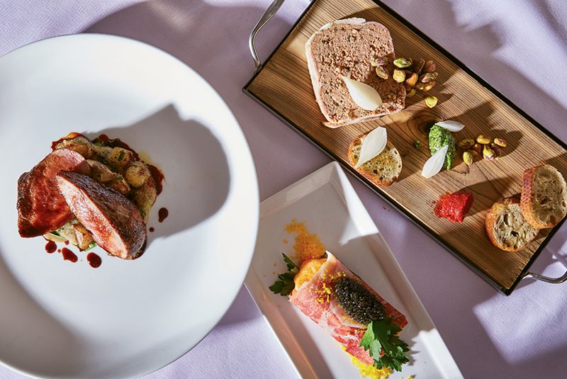 (Left to right) Broken Arrow Axis venison, inspired by Native American cooking techniques and ingredients; a modern take on the Southern grilled cheese; a nod to Europe with veal pâté.