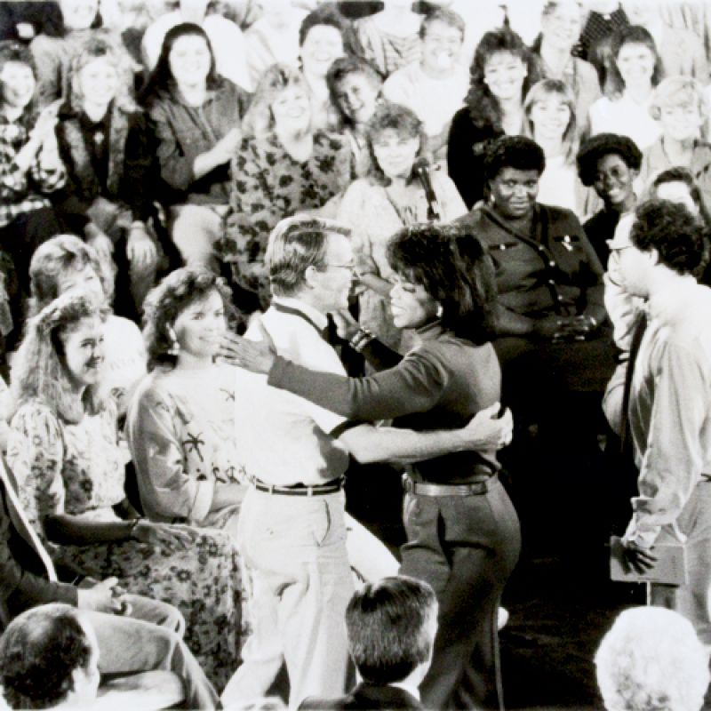 “I don’t know what to say — unbelievable!” exclaimed Oprah Winfrey as she toured Charleston just two weeks after Hurricane Hugo devastated the South Carolina coast. On October 5, 1989, the popular daytime television star filmed her namesake show at the King Street Palace theater, bringing national attention to the suffering city. Clips of Winfrey visiting local residents at their destroyed homes played between live interviews with survivors and Mayor Joseph P. Riley Jr. (pictured here hugging the host). During the program, Winfrey publicized a toll-free number and encouraged viewers to call with donations to the American Red Cross, which would aid in relief work around the state. After only 24 hours, the organization announced that Winfrey’s fundraising efforts brought in more than $1 million in credit-card donations. Such national support was an enormous help in rebuilding Charleston and getting the Lowcountry and its residents back up on their feet.