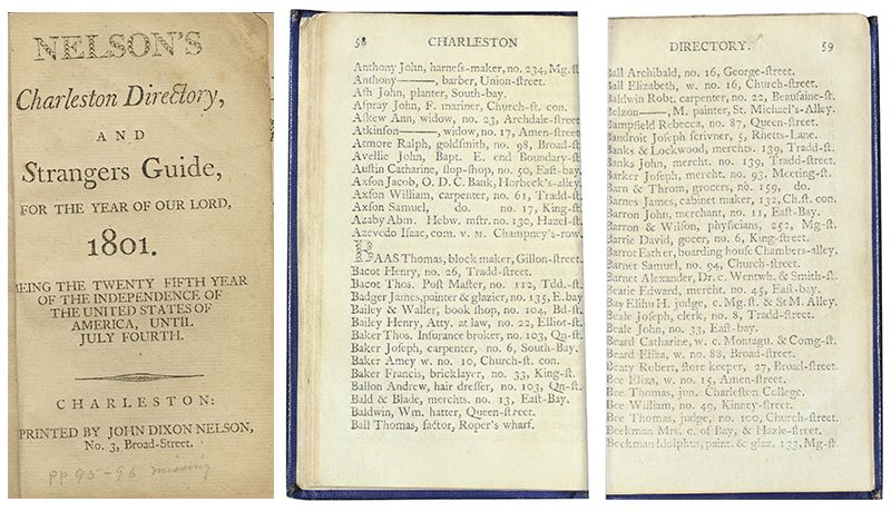 The only option was to consult a book filled with vital information including residents’ names and addresses. Printed since around the time of the revolution, these tomes went by varying titles over the years, with Nelson’s Charleston Directory, and Strangers Guide perhaps being the most intriguing.