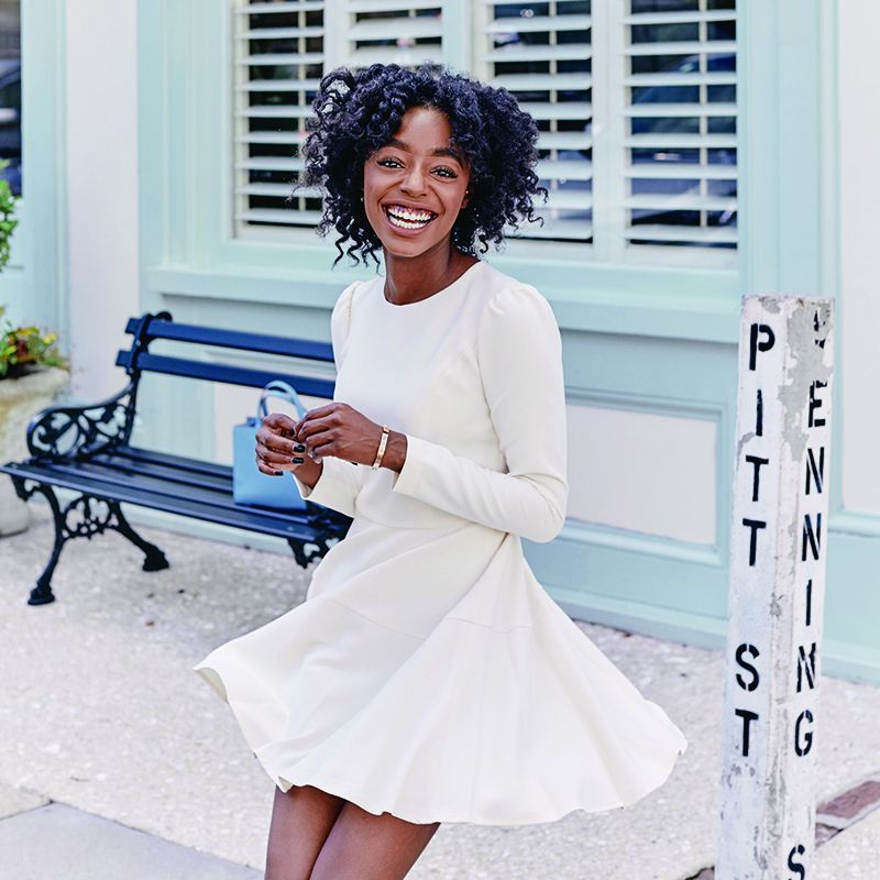 Photographs by (portrait) Jesse Volk & courtesy of (jeans) Abercrombie & Fitch, (Dipbrow Pomade) Anastasia Beverly Hills, & (dress) Pyer Moss
