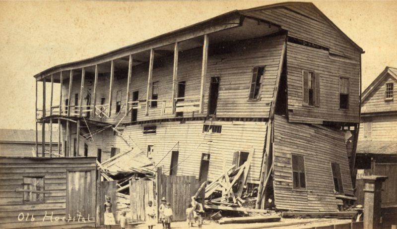 By the time Charleston Renaissance writer John Bennett published his 1946 compilation of Gullah folktales and legends, The Doctor to the Dead, the Trapman Hospital (featured in three of his stories, and pictured here) no longer existed. The building—a Civil War hospital-turned-rental property—was one of many structures destroyed in the city’s catastrophic 1886 earthquake and subsequently immortalized in George LaGrange Cook’s photo series, “Cook’s Earthquake Views of Charleston and Vicinity.” Stories about the edifice also live on through Bennett’s book; though as a white man he may have reinterpreted some of the Gullah fables through a traditional, Gothic lens to appeal to a broader audience, the writer stated that he sought to preserve “remnants of a body of folklore already far decayed and rapidly passing out of existence.” For legends about the edifice that was widely suspected to be haunted, Bennett interviewed washerwoman and former tenant, Mary Simmons, who regaled him with tales of specter soldiers that had perished in the hospital, still begging for water, or in some cases, drinking straight out of the buckets near the well. She suggested that after the building was dismantled nothing would grow on the soil left behind, not even weeds. Houses now stand on the once-barren land at the corner of Trapman Street and Trumbo Court, and though the hospital may be gone, stories like “The Thirsty Dead” survive in the tome documented by Simmons and Bennett.