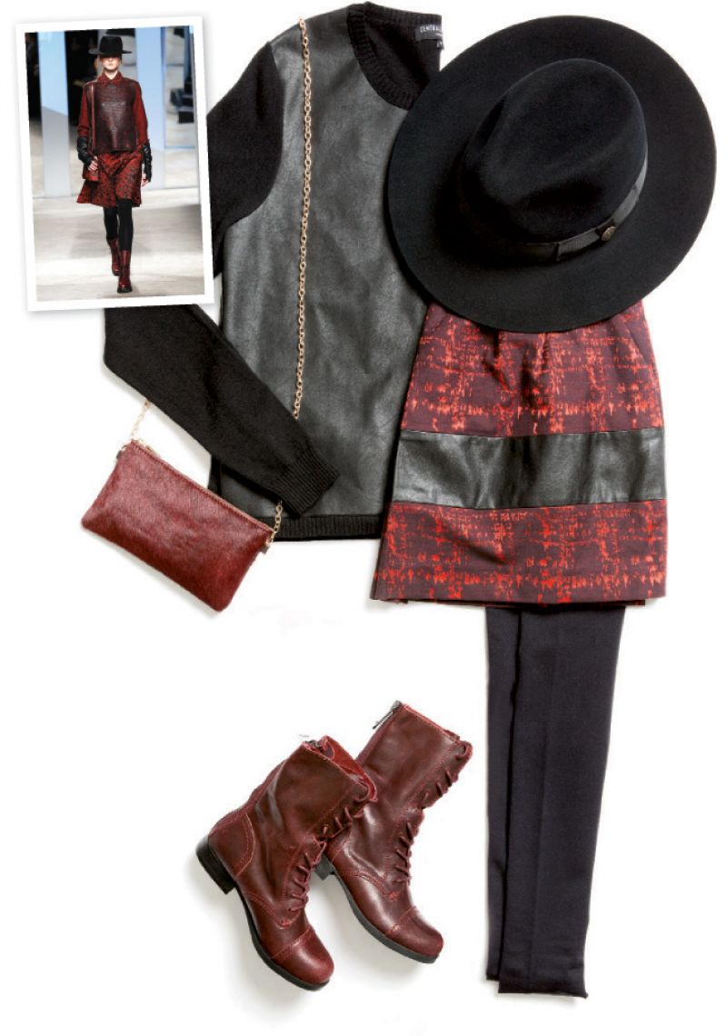 ”Patricia” skirt with a single pleat and faux leather stripe by W118 by Walter Baker