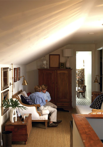 I think it’s fun to have a house that can really evolve over time,” says South Carolina native Courtney Agosti. “I like places with their own identities, and I like things that age. But with three children, my home has got to be liveable.” That blend of dynamic style and adaptability to real life is what drew the busy mom to a circa-1940 cottage in Wagener Terrace. “This was a true exercise in downsizing, as our home in West Ashley had quite a bit more space.” Agosti chose the rapidly revitalizing neighborhood, once part of Lowndes Grove plantation, for its quaint architecture and its proximity to Buist Academy, where her two sons attend school. “I rode by one day and saw this brick house and thought it looked cottagey and cute. When I walked inside, it just felt good.” Making Room Agosti, a maternity-clothing designer-turned-interior decorator, purchased the house in May 2007, becoming only its third owner in more than 60 years. But in the wake of the previous residents’ long stint there, the structure and decor needed considerable refreshing. “I’ve worked on a couple of renovations before, but this is the first one I’ve done more or less on my own,” admits Agosti, who called on Robert Buxton and Richie Johnson of Buxton Construction and finisher and detailer Tim Matthews for help with the four-month project. After much-needed electrical and AC updates, the team set to work making a series of seemingly minor adjustments to the downstairs layout. “This renovation was about lots of small changes that added up to one big improvement,” says Agosti, citing examples like the overhaul of bathrooms, replacement of dated materials, and creative space planning. “A primary focus throughout the project was how to fit everything we needed,” Agosti says. “Because the house is smaller than our old one, so many of the improvements were made with efficiency and organization in mind,” she explains, and points to the kitchen and laundry room as prime territory for these considerations. Here, she added cabinetry for appliances and extra storage. A low countertop in the laundry room provides space for the kids to decorate cookies (a favorite activity) and to make their lunches, while underneath are cabinets for stashing backpacks and other on-the-go gear. To improve the visual symmetry of the rooms, Agosti removed the arched tops of several doorways and shifted the door connecting the kitchen and laundry room to line up with an exterior door. Paneling was laid over the plaster ceilings in those rooms and in the adjacent sunroom, where the kids eat breakfast and do their homework. “I knew that this is where we’d be most of the time, and I thought the paneling helped to marry the rooms,” she says. The paneling also covers the sunroom walls, which had to be stripped to the studs after the contractor discovered rot beneath the vinyl wall coverings. The second story only needed minimal attention, including the revamp of a bathroom. The loft-like area, with its narrow sitting room and two bedrooms, was a key factor in Agosti’s house choice: she envisioned it as a haven for her sons, where they could play video games and “just be boys.” A Lighter, Brighter Palette Once the structural work was finished, Agosti utilized a palette of clean, light colors to brighten the overall atmosphere of the house. To help reflect natural light, she placed mirrors in strategic locations: on the refrigerator doors, covering one wall of the powder room, and in a pair of French doors leading to the master bedroom. Agosti also took measures to revive and repurpose old spaces and objects throughout the house. In the downstairs hallway, a built-in glass-front cabinet houses her prized shoe collection. In the kitchen, the louvered pantry door was replaced with an antique glass-and-wood panel, providing a peek into a china closet stacked with dishes and silver, and antique lamps from a Ford Model A found new purpose when mounted in the boys’ bathroom. “You can’t put your makeup on by the light of those,” Agosti laughs, “but it’s fine for the boys. They’re not shaving yet!” It’s these creative-minded solutions and many more that allow the old cottage to function as a modern home to the bustling family of four. “Now, we fit pretty well into this house,” she says. “We don’t need a lot of space, but we actually use every room. We made good use of what we have.”