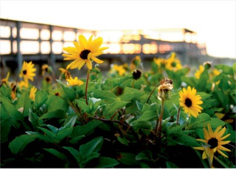The dune sunflower, also known as beach sunflower, is a low-maintenance native that grows on and stabilizes coastal sand dunes. It requires very little watering, thrives in nutritionally starved sandy soils, and can handle a little salt, making it a perfect choice to perk up a beach house garden. The dune sunflower has a low-growing, rambling habit that is quite different than its more upright cousins, so there’s no need to hide unsightly stalks. This joyful rambler can spread three to four feet and reach up to 24 inches tall with nonstop blooms. And, as an annual, it’s ideal for softening garden pathways or showcasing the color of a favorite rose with its glossy green leaves. It also makes a great companion in a vegetable garden, as it won’t compete for nutrition but will attract pollinators—bees, hummingbirds, and butterflies. Plant the dune sunflower as an herbaceous ground cover to keep weeds at bay, and watch as the waves of sunflowers come rolling in.