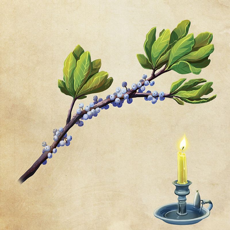 Family Affair Given the abundance of wax myrtle trees, even everyday folk could have fine candles in the 18th century if they were willing to work for them. While visiting the Carolinas in 1731, naturalist Mark Catesby wrote about families harvesting berries in the fall near the seashore. “The man cuts down the trees, while the children strip off the berries into a porridge pot; and having put water to them, they boil them until the oil floats, which is skimmed off into another vessel.” The process was repeated until the wax was clarified to a “transparent greenness” that yielded a “grateful smell.”