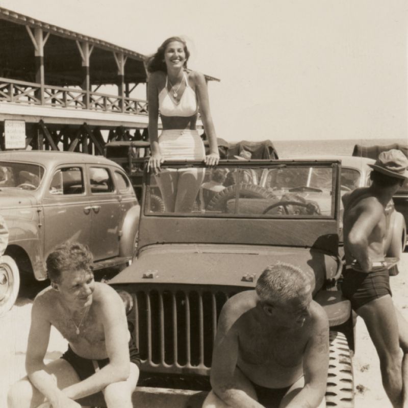 Pictured on Folly Beach in 1942, 19-year-old Helen Laufer of Wagener Terrace catches the breeze from the front seat of a friend’s Jeep. Before the banning of cars on the sand, prime parking was found next to the Atlantic Pavilion, where folks gathered for sun and shagging. A hot spot in the early 1940s, Folly boasted attractions including an amusement park and bowling alley, though perhaps the biggest draw was the dance pier, the heart of the island’s nightlife. Opened in 1931, the pier drew national music acts such as Benny Goodman, Fats Domino, and The Drifters to the bandstand on the “Edge of America.” —Alex Keith (granddaughter of Helen Laufer)