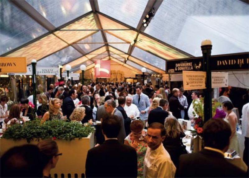 They were nonchalant, these culinarians, their confidence high with their cream sauces and puffs, their scallop mousses, their foie gras, their prawns. And for $600, anyone could join the mass of well-heeled epicureans mobbing the booths for tasting plates. With a $2,500 VIP pass, a couple could hobnob half an hour early, have the night’s first lavender-sprig-garnished drinks, the first caviar egg cups, maybe bump into early-bird Kathleen Turner, who upon walking in gazed about and said, in her marvelous throaty voice, “My word, look at all of this.”