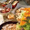 Casual fetes call for casual dishes; select simple vessels in a neutral palette that coordinate with your table décor. Place matching bowls on top of dinner plates for a pulled together look and accompany the setting with bamboo flatware ($3.95 at Crate and Barrel) that’s designed for outdoor use.
