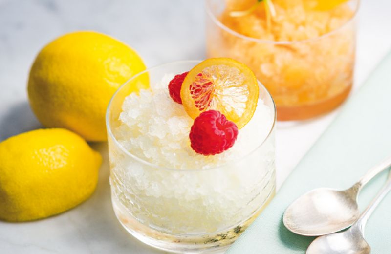 Though a heaping spoonful is often served as a palate cleanser between courses, granita can make for the perfect summertime refreshment on its own. “It’s great for kids,” notes Peninsula Grill executive pastry chef Claire Chapman. “It’s like a snow cone, but not overly sweet.” For a fun adults-only treat, try this alcoholic version