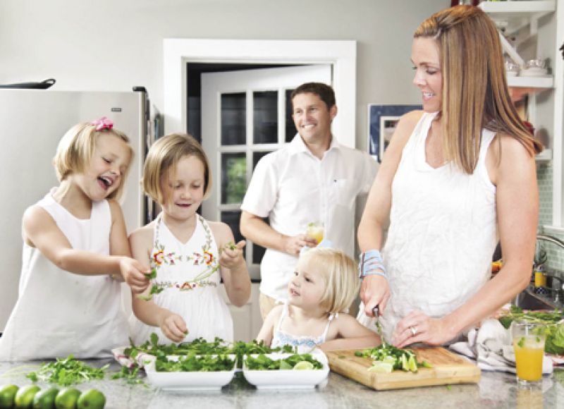 Carrie’s philosophy is that little hands and palates learn early. “I spend every afternoon with my girls. If we need to go to the grocery store, they each get to pick one item from the food groups: starch, fruit, vegetable, and meat,” she explains. “Then we come home, do homework during the school year, and prepare dinner together.”