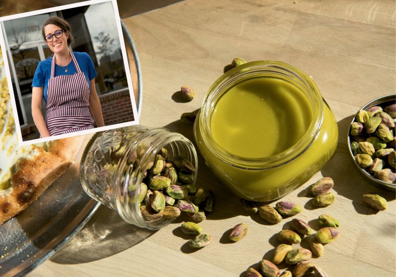 Bold, nutty pesto sauce pops on a springtime plate—you can spread it on pizza, toss it with pasta, or spin it as a savory dip for bread. At EVO, chef Blake McCormick replaces traditional pine nuts with pistachios for an extra-green twist on the condiment