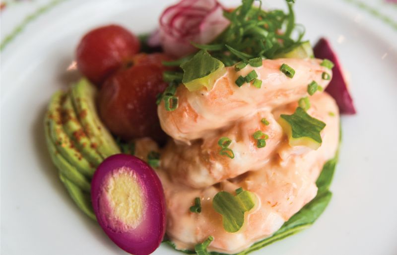 If disappointment strikes, as it did for me on two dishes, reconsider your approach. Be sure to layer each forkful with all the elements on the plate. Case in point: the dressed shrimp appetizer. Alone, the creamy “Louie” dressing on the shrimp fails to pack a certain zing, yet when speared with an orb of its beet-pickled quail egg sidekick, the flavors together sing. Same goes for the classically French oeufs en gelée, in that the egg, aspic, and lettuce greens feel lackluster without the tiny bursts of bright orange, briny trout roe needed to complete each bite.