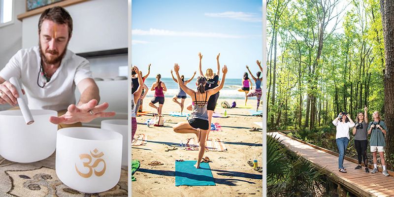 Discover mindful mediations, yoga with four-legged friends, sound baths, herb gathering, and more