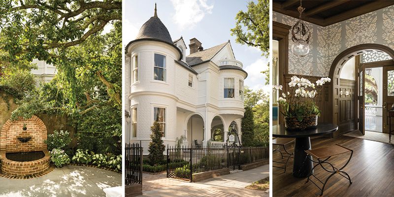 The story 19th-century manse's updated interiors include contemporary furnishings, clean finishes, and fresh...