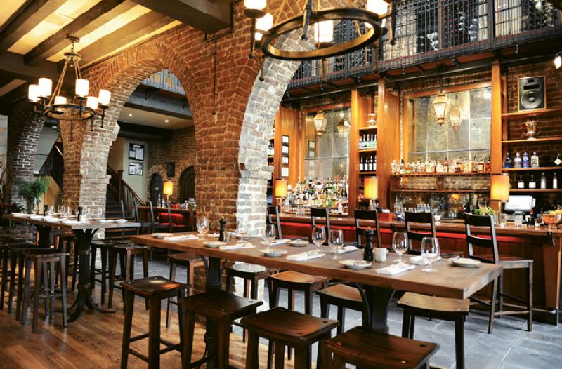 Charleston Place may not previously have come to mind when choosing a spot to grab a few beers and watch the game, but that all changed with the opening of Meeting at Market, a highbrow sports bar nestled—you guessed it—on the corner of Meeting and Market streets. Upon arrival, settle in at the bar or lounge in one of the back sofa seats and order from an extensive drink list including nearly 10 local brews. You can’t go wrong with the menu’s elevated pub fare, including a smoked fish sampling board, fried confit chicken thighs, and a supremely tender salmon filet à la fish and chips. And for those who aren’t that into the televised activities, wraparound glass windows provide plenty of opportunities for people watching. www.belmond.com/charleston-place