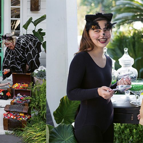 For 15 years now, event designer Lisa Thomas’s lair has been the “it” place for trick-or-treaters—and their chaperones. As for adding a little freaky flair to your own front door, she says all that’s needed is a classic wreath (like this hydrangea number by Lisa’s floral business, Out of the Garden), florist wire, fluffy grasses, and creepy-cool add-ons—think faux crows and leggy spiders.