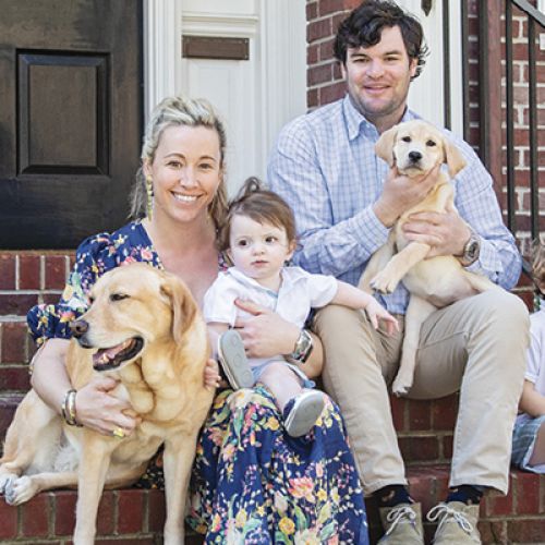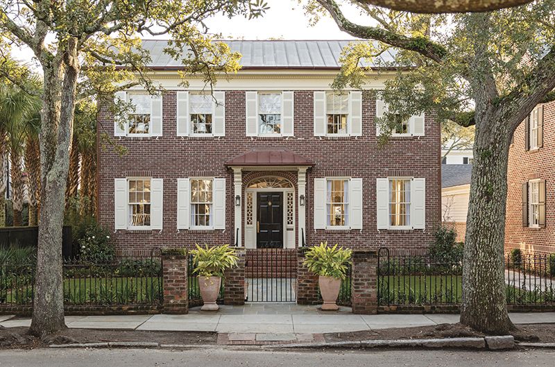 HIP TO BE SQUARE: Working with an architect, a builder, and an interior designer, Cate and Hugh Leatherman updated a boxy brick Colonial-style house South of Broad to suit their brood. “I love how neighborhoody it feels here,” says Cate, who grew up around the corner. “It has a family vibe.”