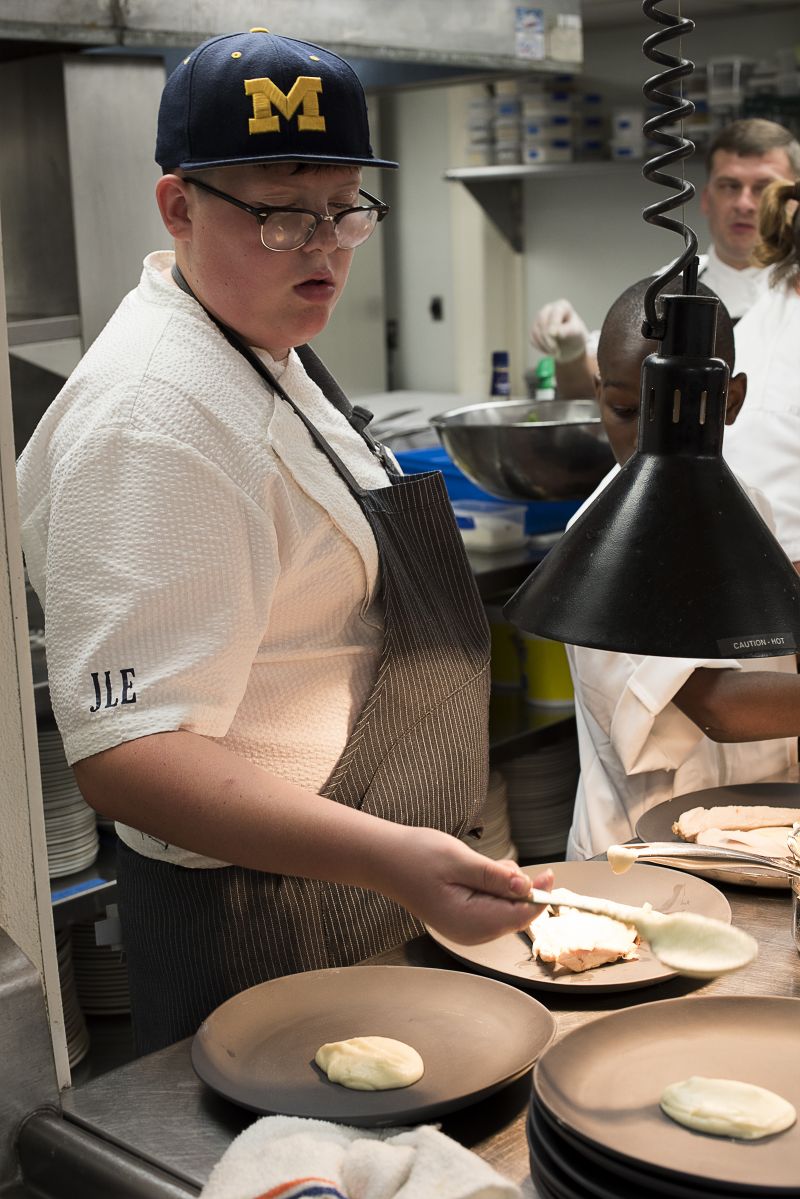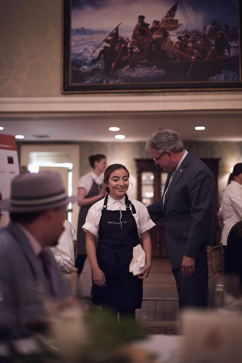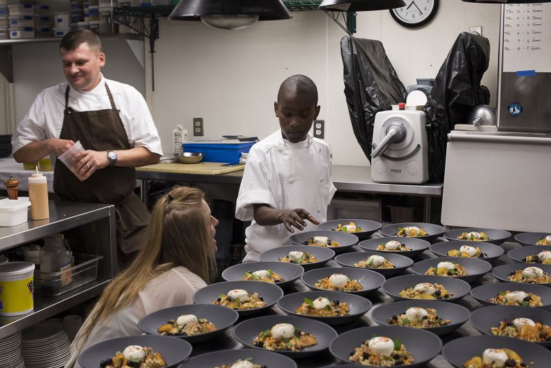 The Party: The much-anticipated Big Chef Little Chef, an annual dinner party supporting Louie's Kids, a local organization fighting childhood obesity founded by Louis Yuhasz, dazzled this year at the Long Room in McCrady's Tavern. To prepare for the event, four renowned Charleston chefs were paired with kids ages 10 through 16, teaching them over the course of several weeks how to cook healthy meals that were as delicious as they were nourishing. Little Chef Big Chef was the culmination of their efforts: the chef-and-protégé teams each served a tasty and creative course to the attendees, including a grilled corn, peach, and burrata dish from Husk's Travis Grimes and Robert; scallop ceviche from Charleston Grill's Michelle Weaver and Katie; roasted chicken with carrots and granola from FIG's Jason Stanhope and Josh; and non-fat yogurt semi-freddo from McCrady's Katie Keefe and Katie. Throughout the meal, the knowledgable "little chefs" mingled among the elegant tables, explaining the fresh ingredients inside each dish and the steps they took to prepare it, to the delight of the diners.