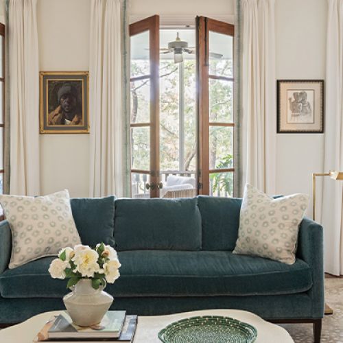 A Refreshing Upgrade: It’s astonishing what a new rug, a touch of woodwork, and a lick of paint can do to a room. The living room of this I’On home was given new life by designer Allison Elebash, who reworked the built-in bookshelves to be more decorative, added bright, colorful furniture—including two Lee Industries sofas upholstered in a bright blue mohair and a pair of white leather swivel chairs, ordered through GDC Home—and tied it all together with a large “Antelope” Stark area rug. Her touches of magic extended throughout the rest of the home with a cosmetic makeover of the main living spaces.