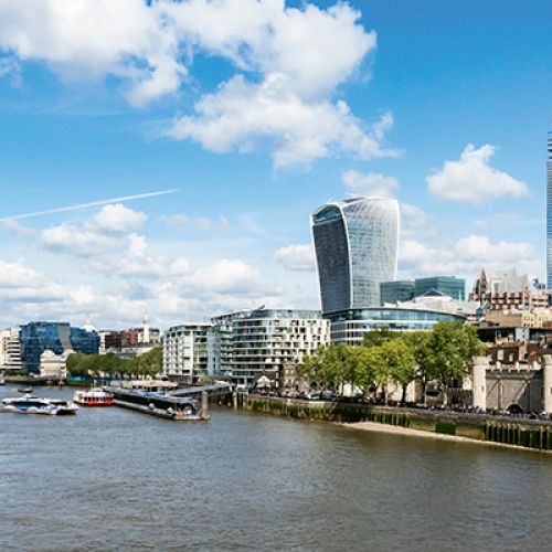Following the River Thames, travelers can get close-up views of some of London’s iconic buildings, including the Tower Bridge...