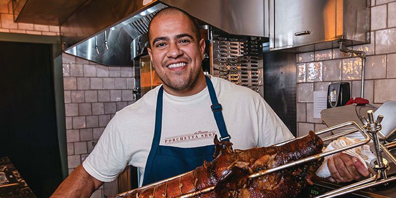 The focaccia sandwiches are stuffed with savory, locally raised pork