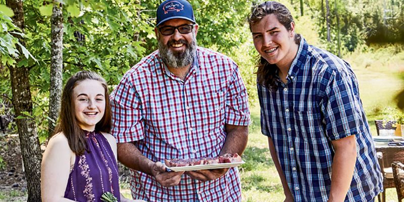 High Wire Distilling Company owners Scott Blackwell and Ann Marshall prepare a summer feast of grilled fish, tomato pie...