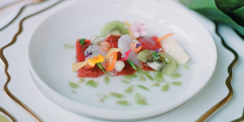 Sorghum & Salt’s Tres Jackson prepares an appetizer of cured salmon with salty-sweet cucumbers, puréed avocado, and...