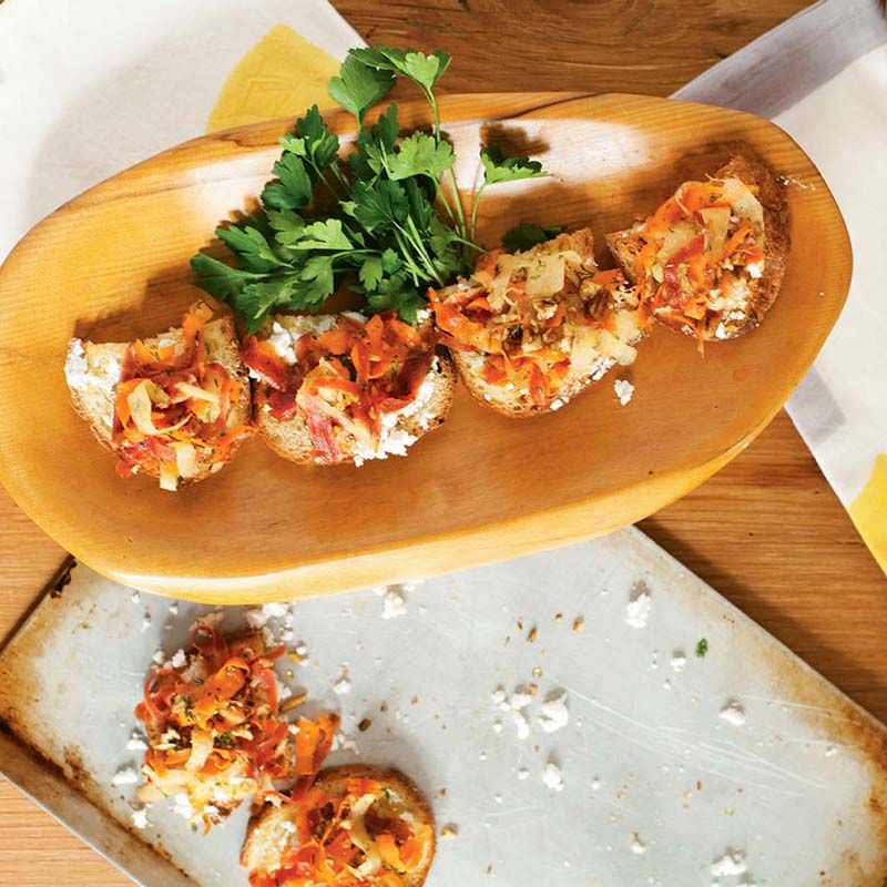 Carrot Crostini with Burden Creek Dairy Goat Cheese