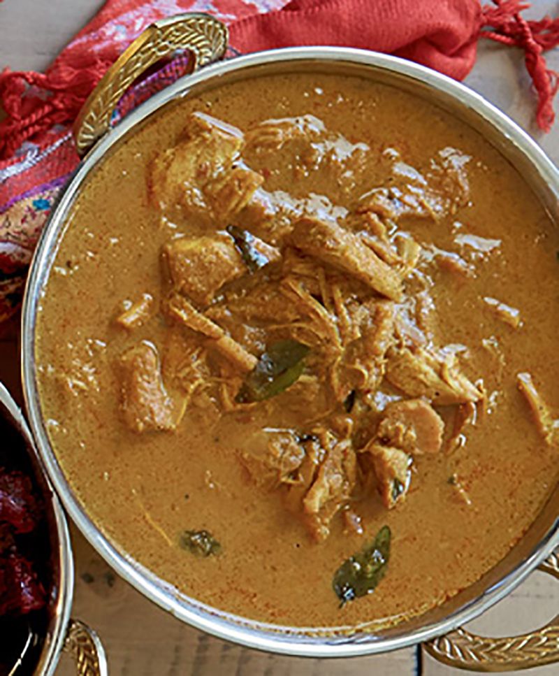 Transfer the curry paste back to the pot and add the chicken and coconut milk. Bring to a simmer, cover, reduce the heat to low, and simmer for 45 minutes, stirring occasionally. Season with additional salt if desired.