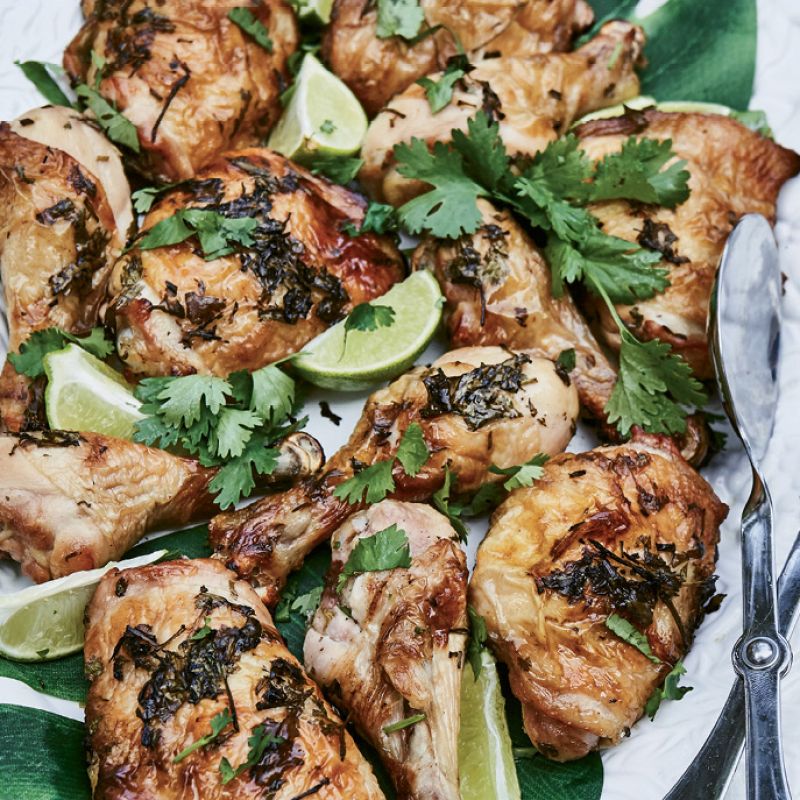Turn off the heat and transfer the skillet to the preheated oven. Bake until the chicken is cooked through, about 10 to 12 minutes. Serve with white rice, black beans, and a drizzle of the extra pan drippings. Covered, the chicken will keep for up to three days in the refrigerator.