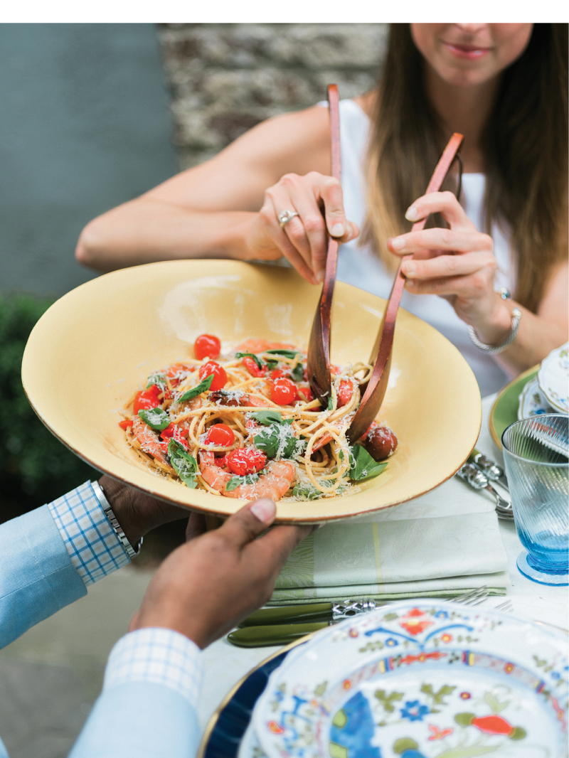 In an eight-quart pot, bring six quarts salted water to a rolling boil and cook linguine until al dente. Reserve 1/3 cup of the pasta water and drain pasta. Add pasta to the sauce and toss well, adding enough pasta water to reach desired consistency. Garnish with the fresh basil and grated ricotta salata. Serve with rustic bread.